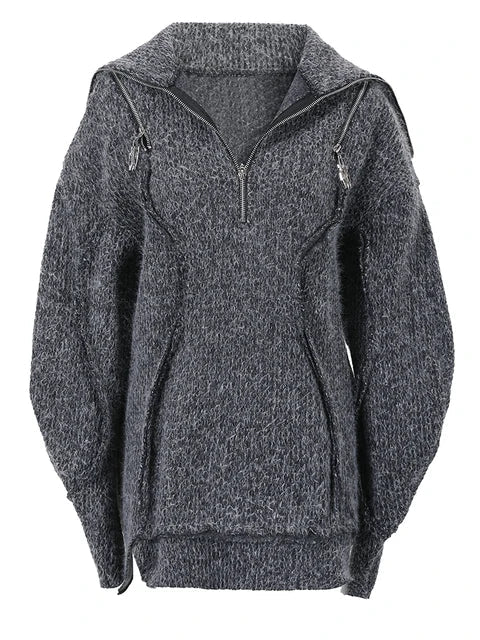 Add some details to your outfit with this classy Women's Knitted Sweater Gray!